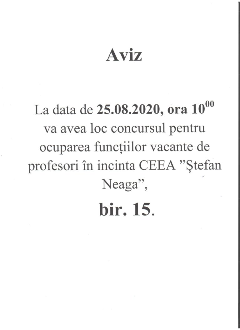 Concurs pentru admiterea candidaților anul de studii 2020-2021(turul II) la specialitățile: Mai mult » august 6, 2020