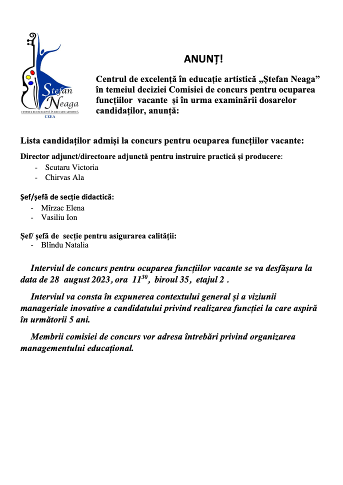 Lista candidaților admiși la concurs pentru ocuparea funcțiilor vacante