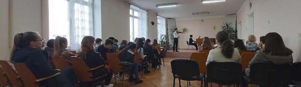 Desfășurarea concursului de ”Sonata Preclasică”, la catedra Instrumente cu Coarde, cu participarea elevilor secției Interpretare Instrumentală a CEEA Ștefan Neaga, catedrele Instrumente cu Coarde și Instrumente Populare.